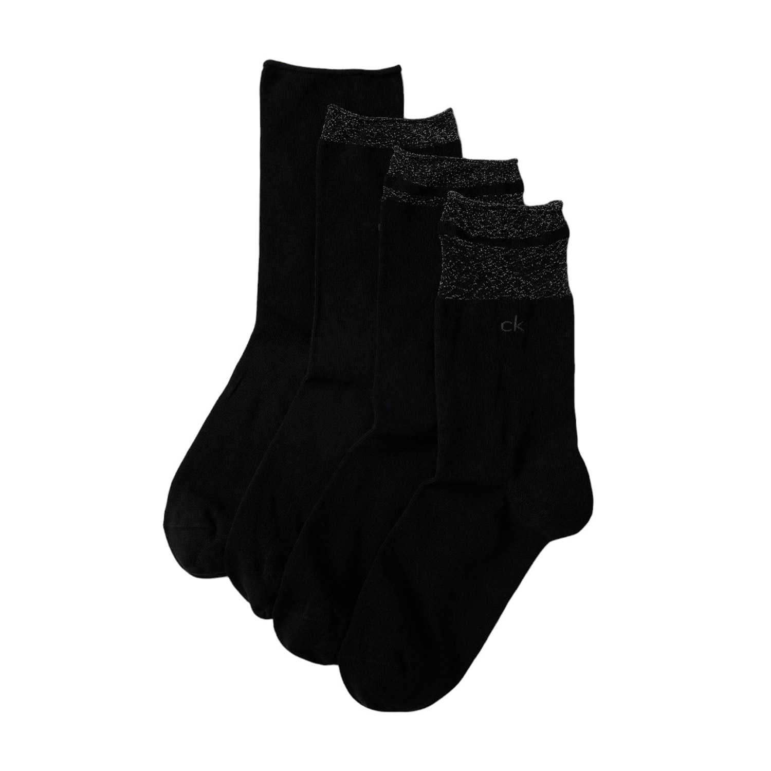 Calvin Klein γυναικείες κάλτσες 4Pack, σε μαύρο χρώμα, κατασκευασμένες από 62% βαμβάκι, 31% πολυαμίδιο, 5% μεταλλικές ίνες, 2% ελαστάνη.