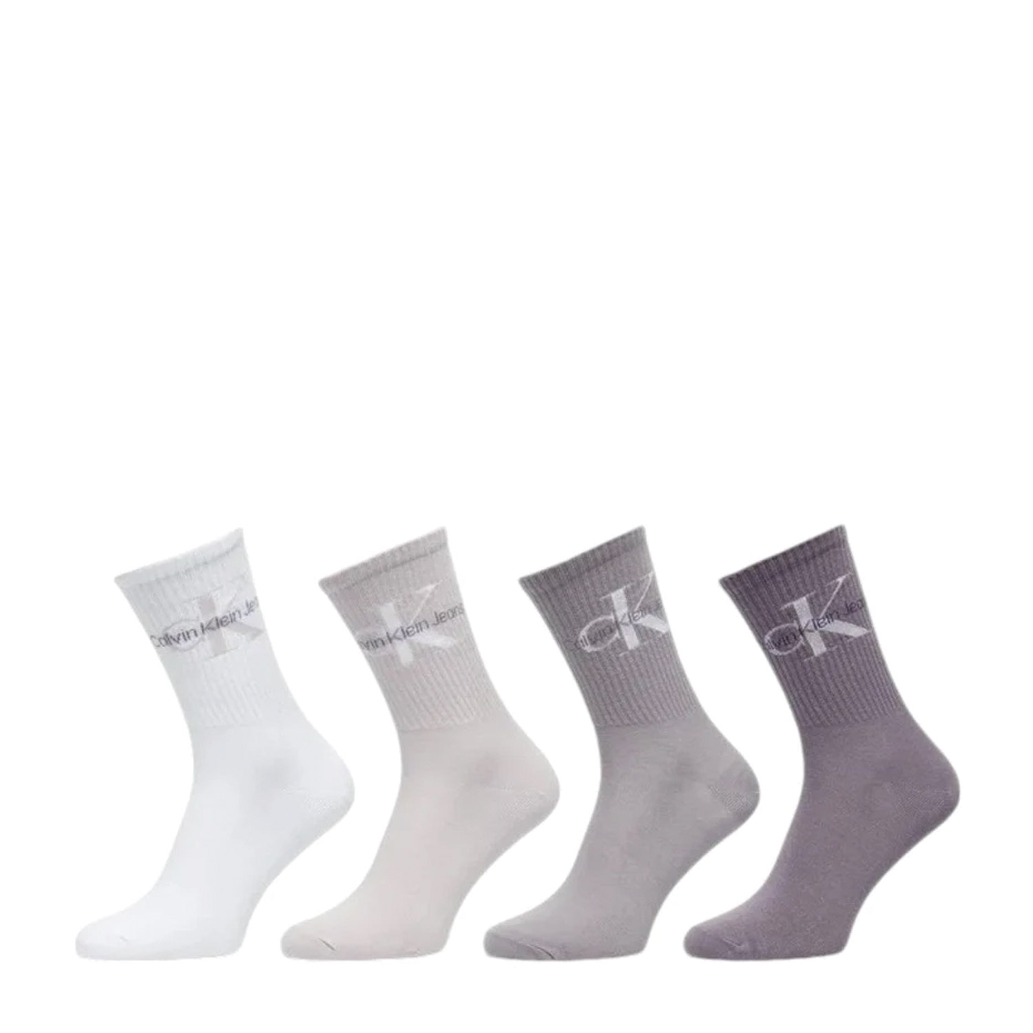 Calvin Klein γυναικείες κάλτσες 4Pack, σε λευκό-μωβ χρώμα, κατασκευασμένες από 66% βαμβάκι, 31% πολυαμίδιο, 3% ελαστάνη.