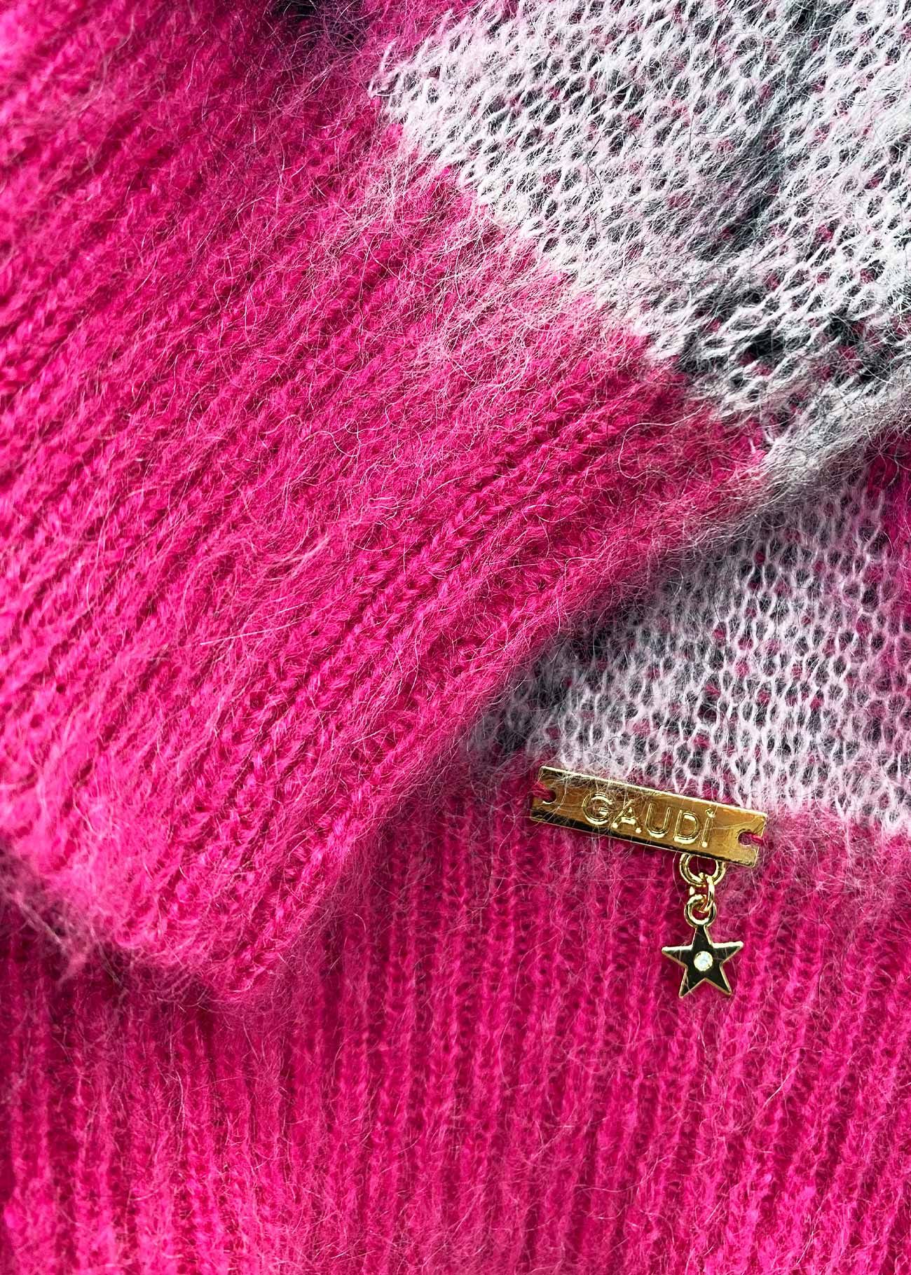 Gaudi γυναικείο πουλόβερ, σε χρώμα φούξια, κατασκευασμένο από 45% ακρυλικό, 30% νάιλον, 15% μάλλινο.