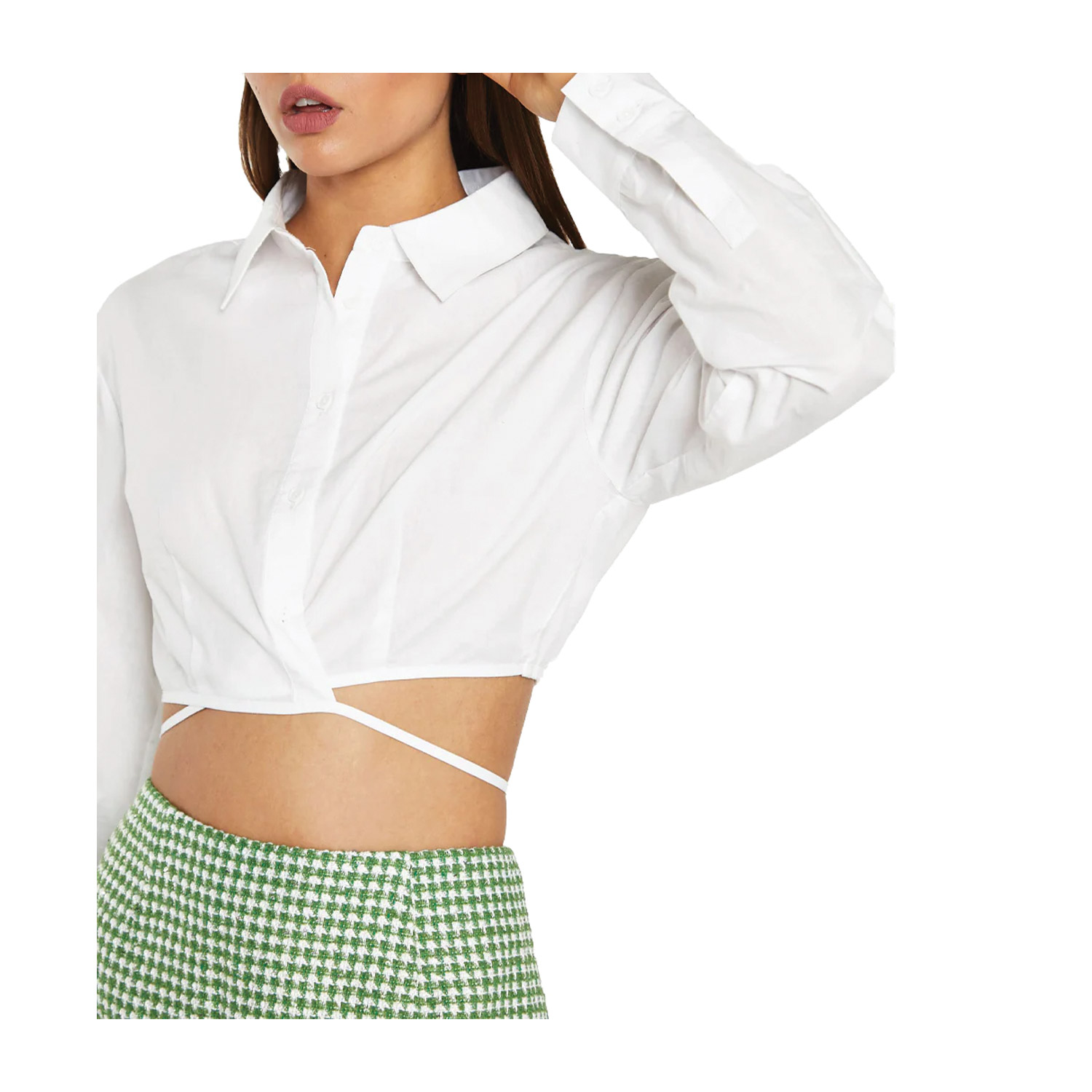 Glamorous γυναικείο πουκάμισο, σε λευκό χρώμα, κατασκευασμένο από 70% βαμβάκι, 20% πολυαμίδιο, 10% ελαστίνη.