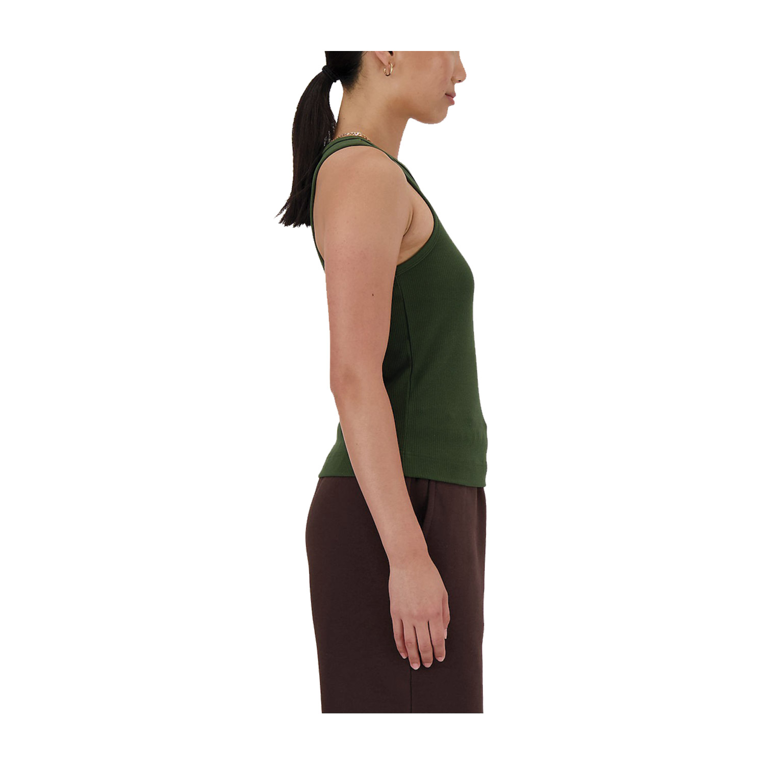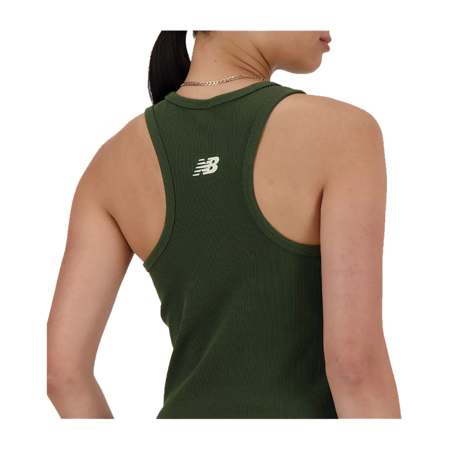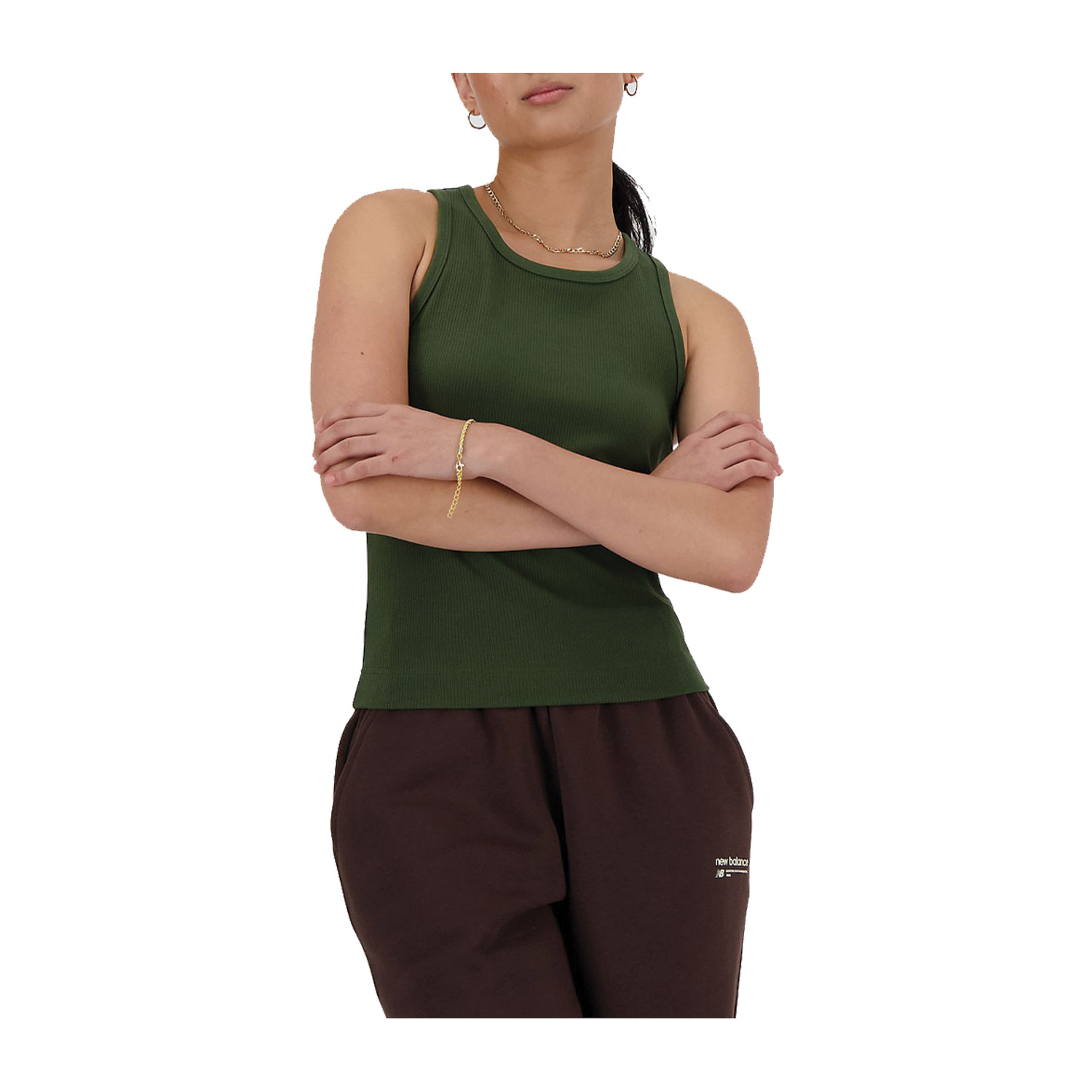New Balance γυναικεία αθλητική μπλούζα, σε χακί χρώμα, κατασκευασμένη από 90% βαμβάκι, 10% spandex.