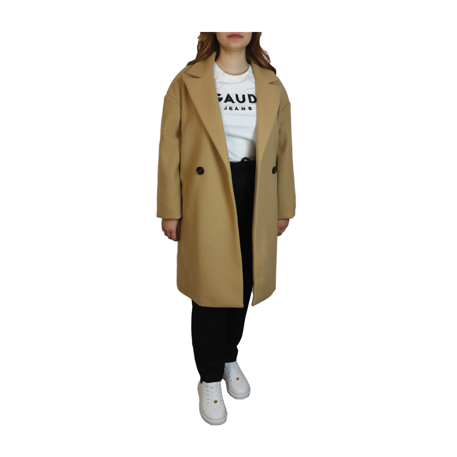 Gaudi γυναικείο παλτό, σε κάμηλο χρώμα, κατασκευασμένο από 100% πολυεστέρα.