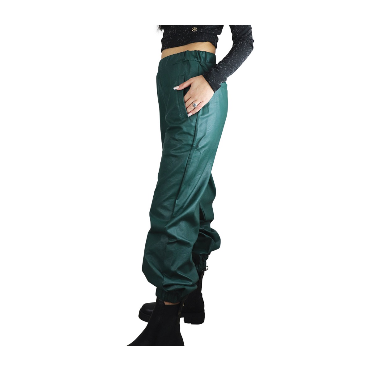 Kendall And Kylie γυναικείο παντελόνι σε πράσινο χρώμα κατασκευασμένο από οικολογικό δέρμα.