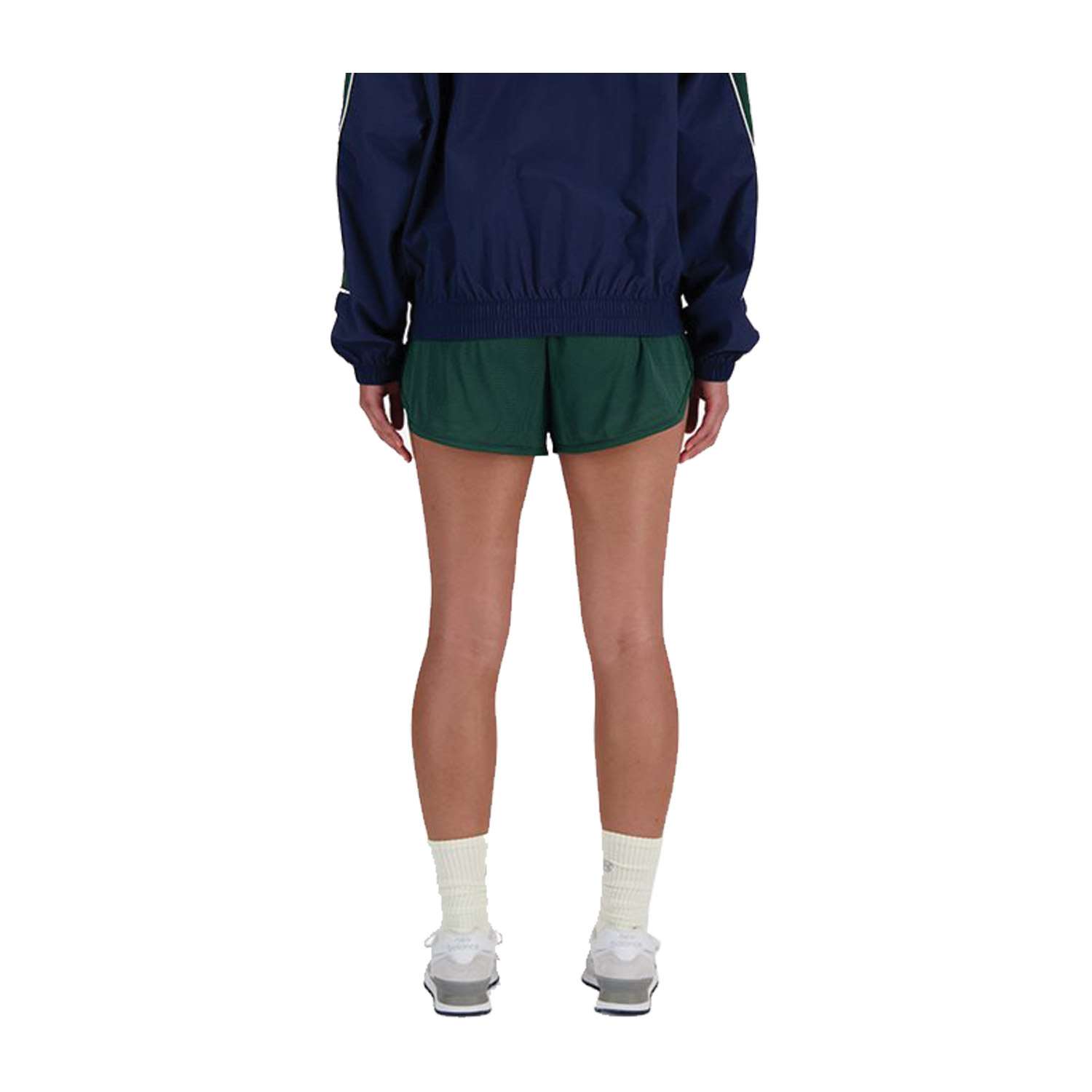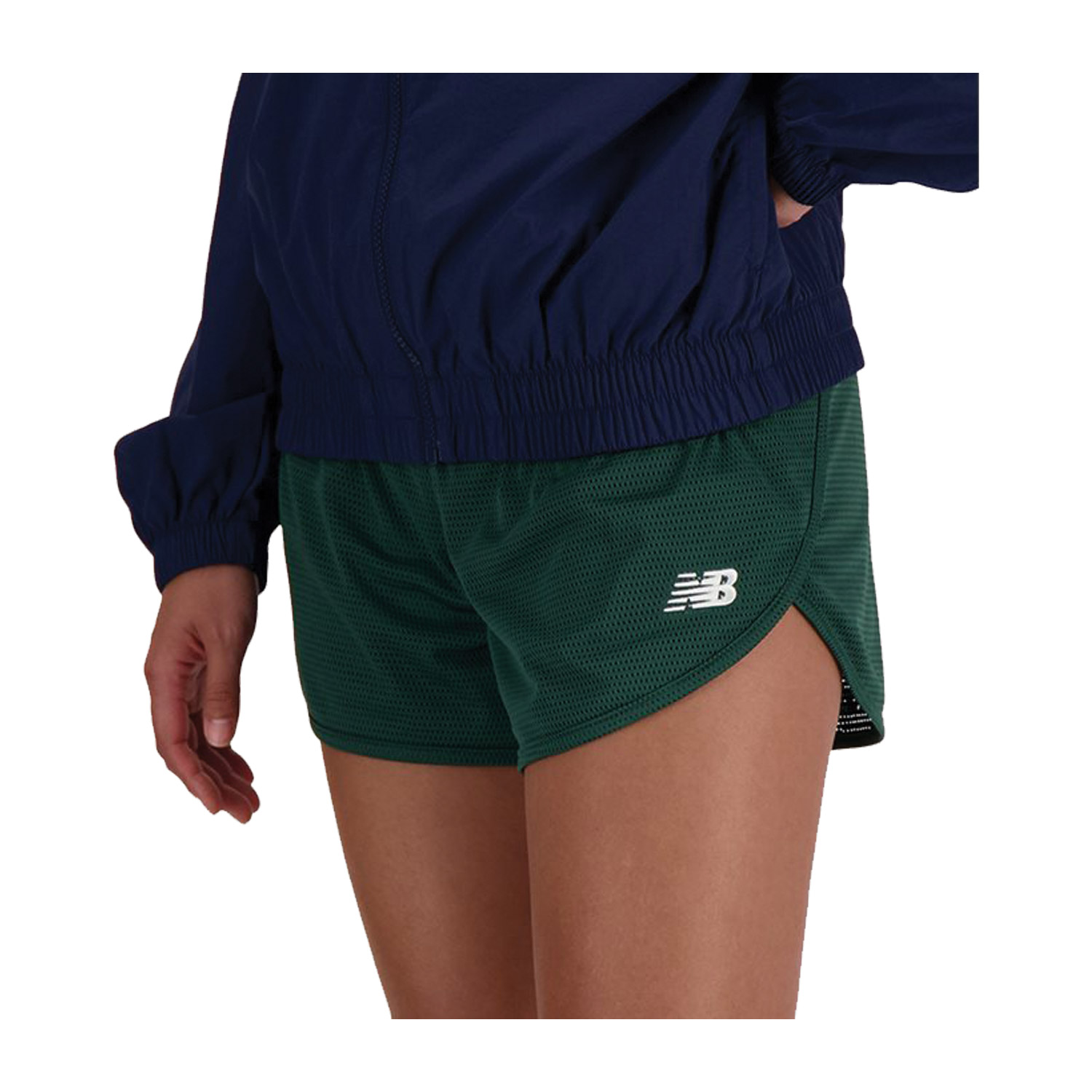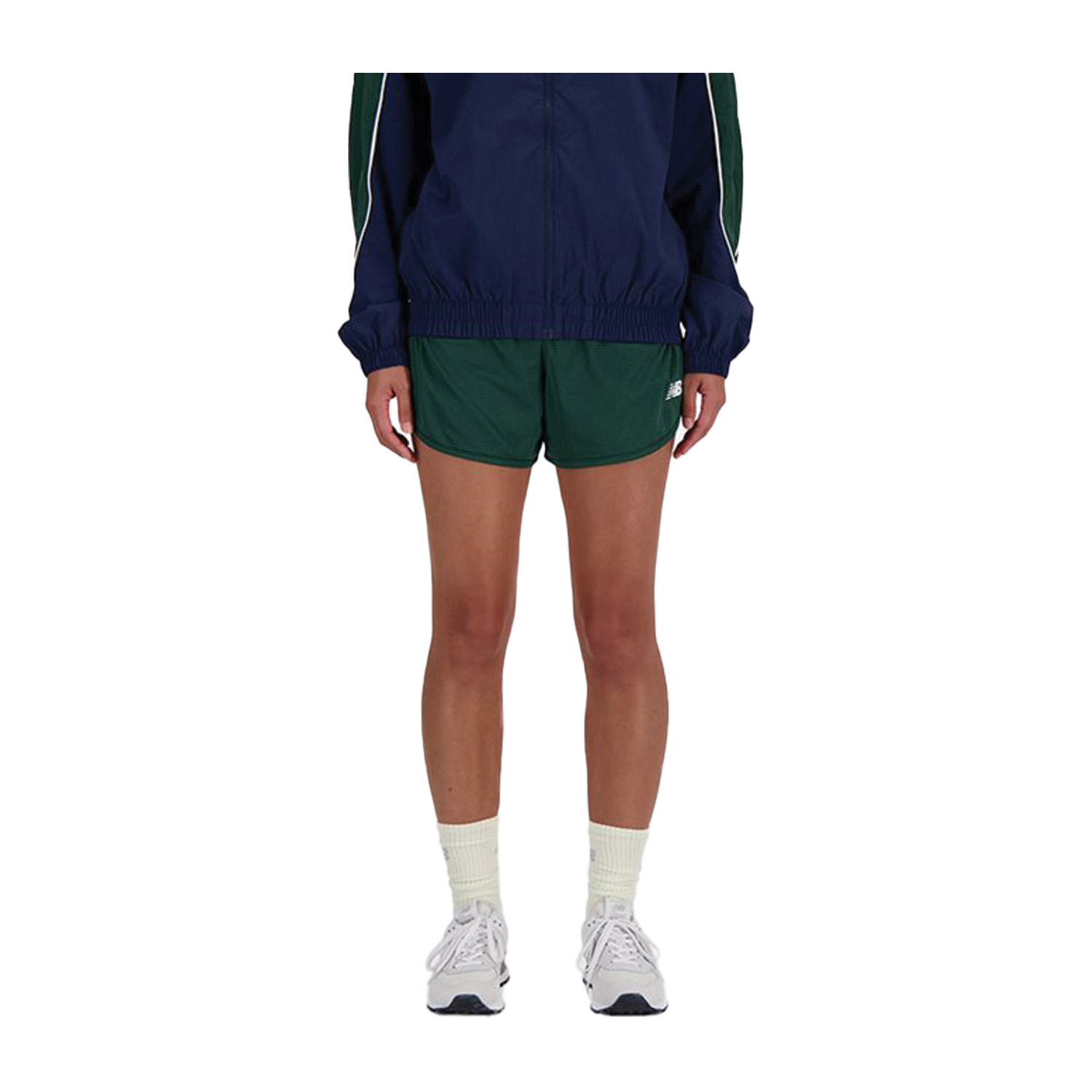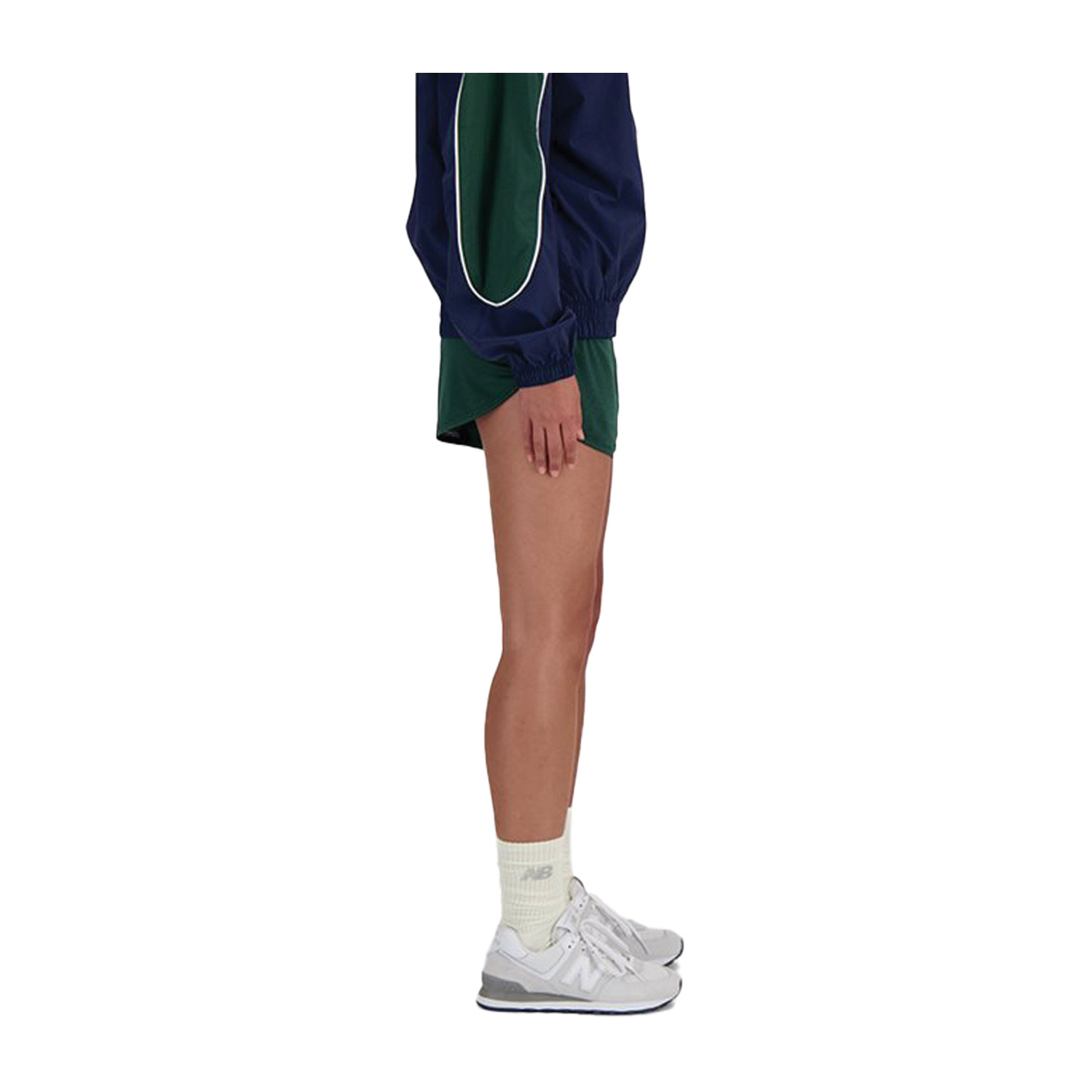 New Balance γυναικείο σορτς, σε πράσινο χρώμα, κατασκευασμένο από 100% ανακυκλωμένο πολυεστέρα.