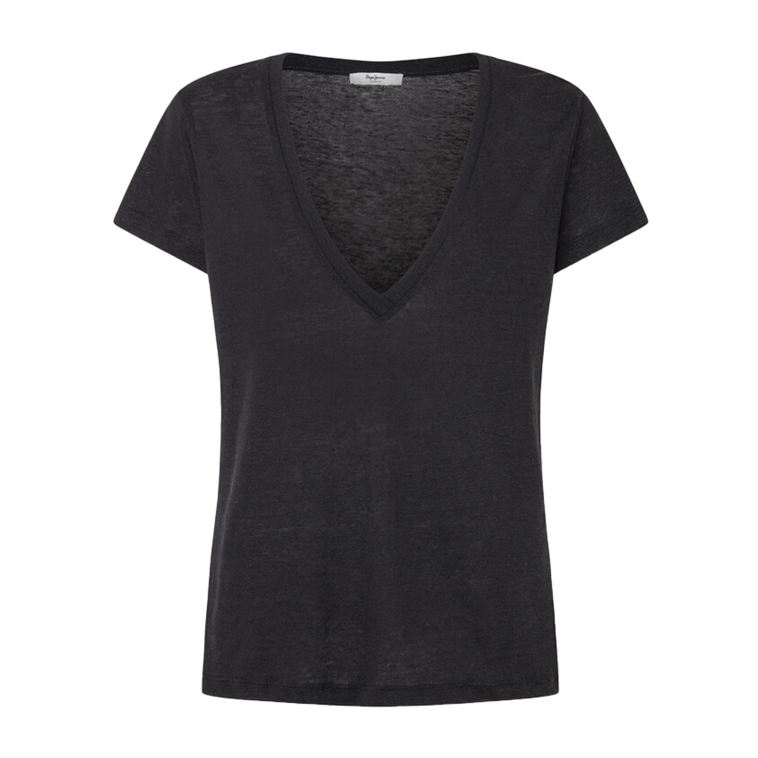 Pepe Jeans γυναικείο t-shirt, σε μαύρο χρώμα, κατασκευασμένο από 100% λινό.