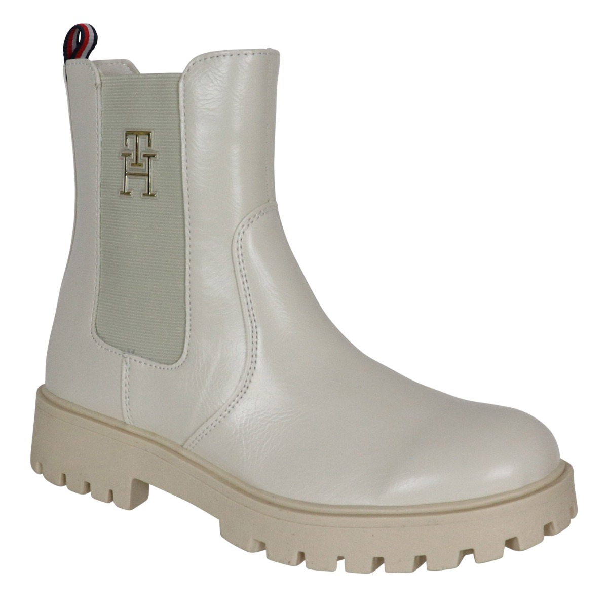 Tommy Hilfiger γυναικεία μποτάκι σε εκρού χρώμα κατασκευασμένο από οικολογικό δέρμα. Ύψος σόλας 4εκ.